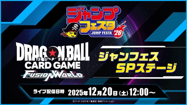 ジャンプフェスタ2026より、ドラゴンボールスーパーカードゲーム フュージョンワールドのステージをライブ配信! 最新情報の他、デジタル版の対戦でド迫力のバトルシーンを体感しよう! ◆配信スケジュール 2025年12月20日(土) 12:00~ドラゴンボールスーパーカードゲーム フュージョンワールド ジャンフェスSPステージ ※配信スケジュールは変更になる場合がございます。予めご了承ください。 詳細 […]