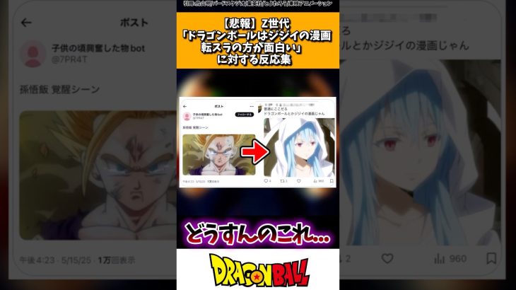 【悲報】Z世代「ドラゴンボールはジジイの漫画転スラの方が面白い」に対する読者の反応集