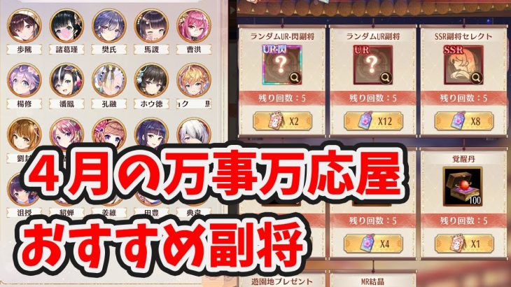 【放置少女】4月の万事万応屋のおすすめ副将は?
